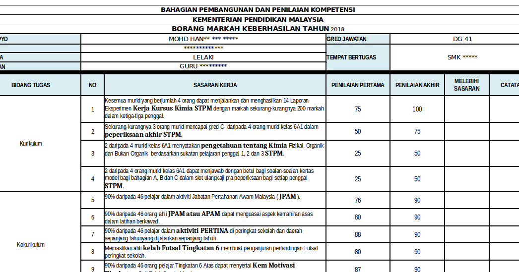 2 memastikan 95% guru mengemaskini markah pjask dan segak mengikut jajaran masa yang ditetapkan. Contoh penulisan sasaran keberhasilan hem mp3 & mp4. Zainal bin ripin moe 5 months ago. Pk kokurikulum bidang bil sasaran keberhasilan pengurusan memastikan 85% guru pajsk mendapat menghadiri kursus pajsk peringkat daerah. Penilaian komponen keberhasilan merupakan sebahagian daripada penilaian bersepadu pegawai perkhidmatan pendidikan (pbppp).